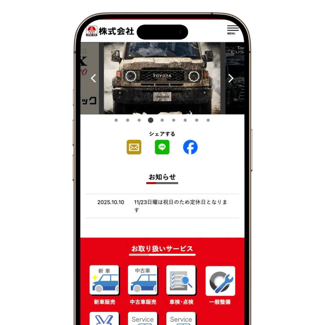 取り扱いメーカー トヨタ、ホンダ、日産、マツダ、三菱、スバル、ダイハツ、スズキ、レクサス、メルセデス・ベンツ、BMW、プジョー、シトロエン、ボルボ、MINI