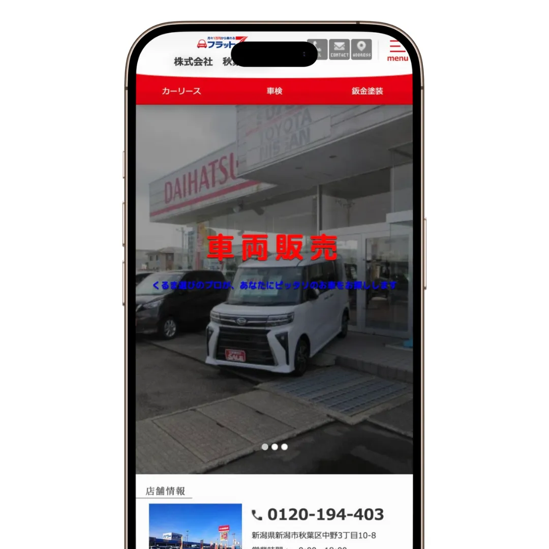 | 取り扱い車種 | トヨタ、ホンダ、日産、マツダ、三菱、スバル、ダイハツ、スズキ、レクサス、メルセデス・ベンツ、BMW、プジョー、シトロエン、ボルボ、MINI |