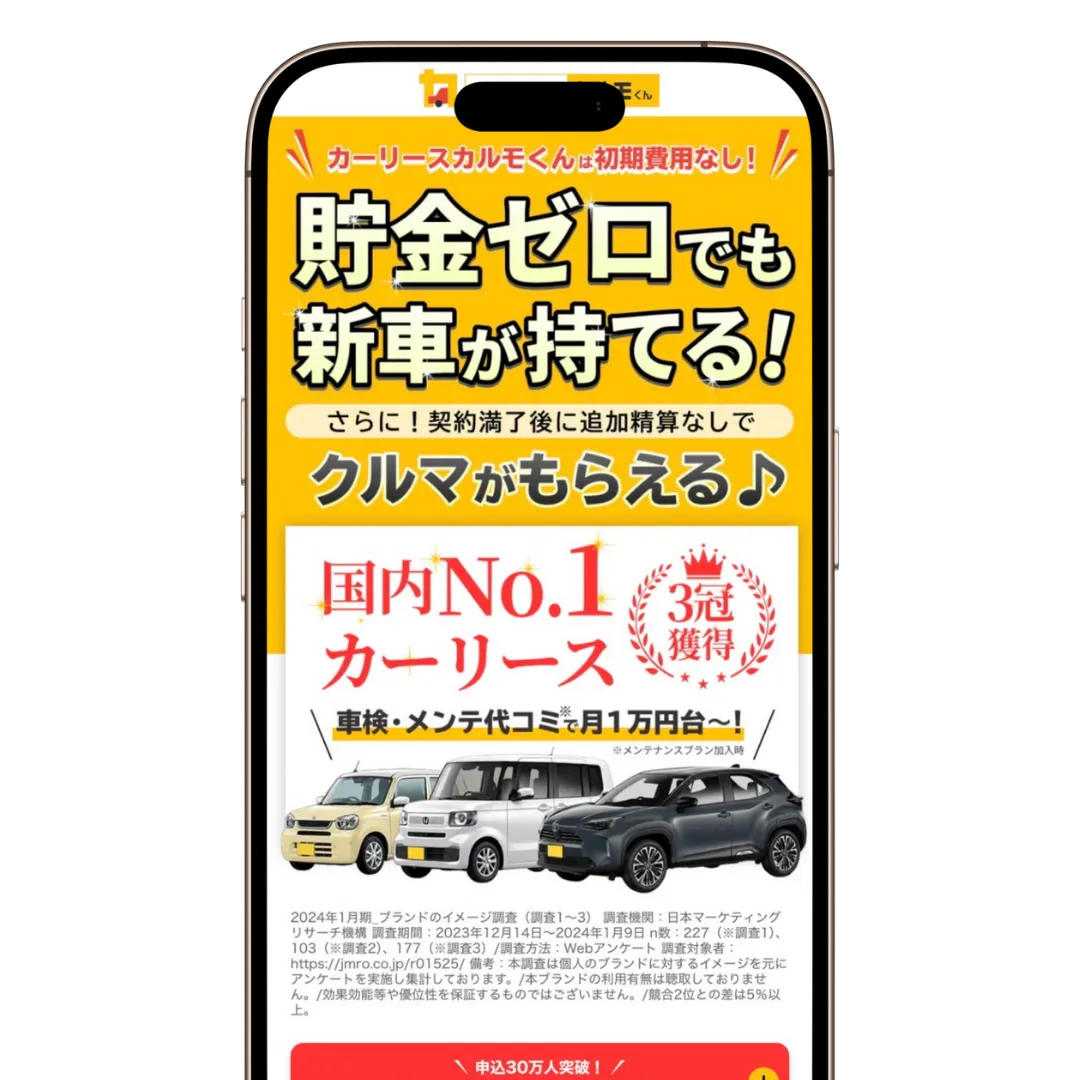 まずは、カーリースカルモくんの公式サイトにアクセスしよう。
