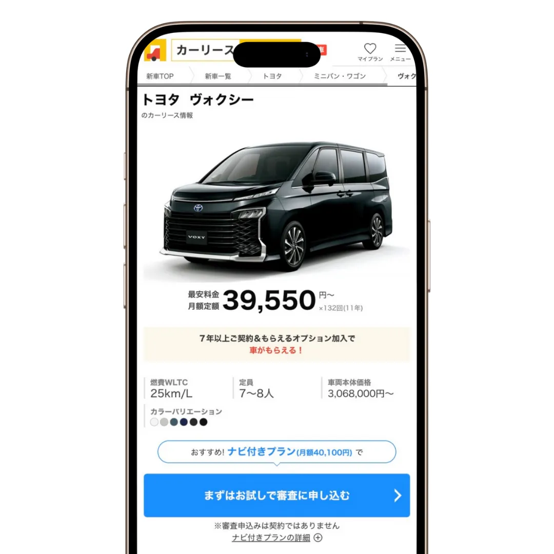 車種別のページが表示されたら、「まずはお試しで審査に申し込む」をタップしよう。