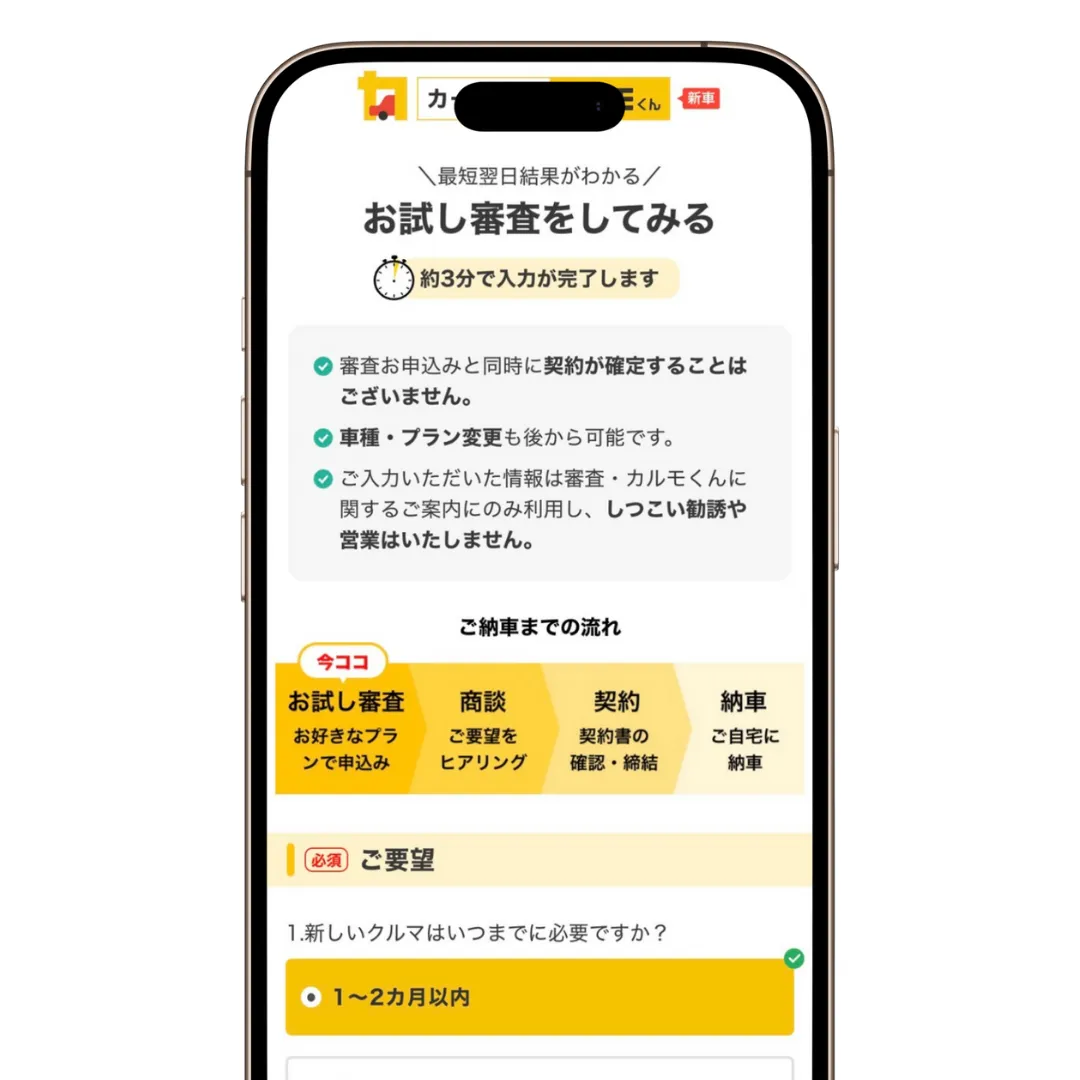簡単3分!カーリースカルモくんの仮審査に申し込む方法