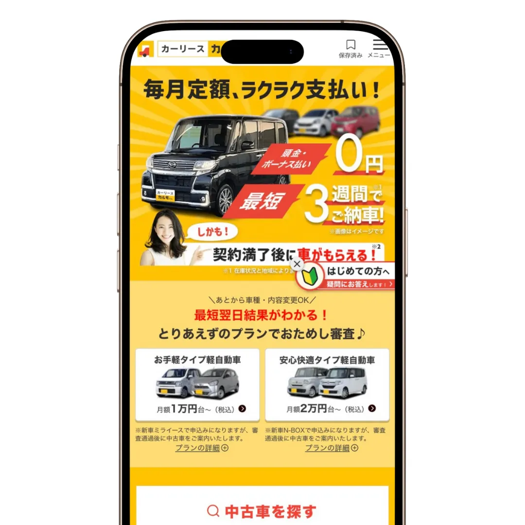 まずは、カーリースカルモくんの公式サイトにアクセスしよう。