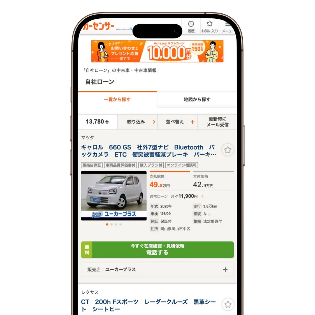 カーセンサーなら自社ローン取り扱い店を探せる?
