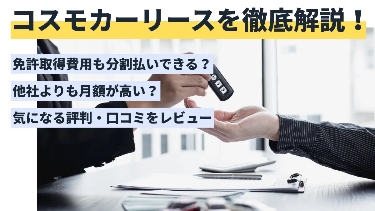 口コミ・評判やメリット・デメリット、支払い総額の比較なども紹介しているため、コスモマイカーリースについて知りたい人はぜひ参考にしてほしい。
