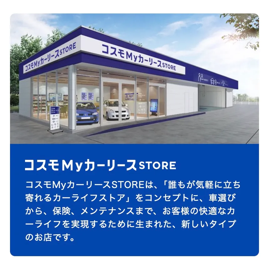 また、コスモマイカーリース取扱店舗のうち300店舗以上は、コスモマイカーリースSTOREを設置している。