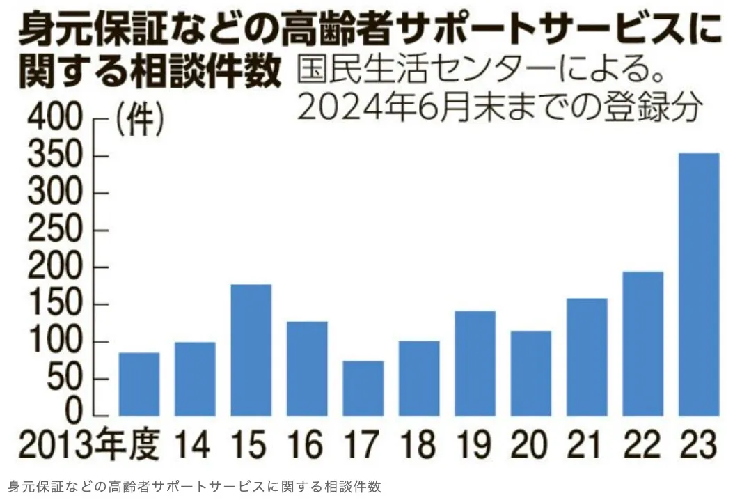 また、消費者センターにおける保証人代行サービストラブルの相談は年々増加している(2013年〜2023年で4倍に増加)。