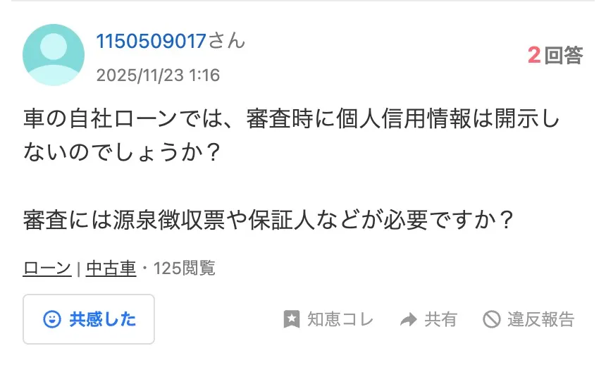 「Yahoo!知恵袋で自社ローンについての質問・回答はある?」