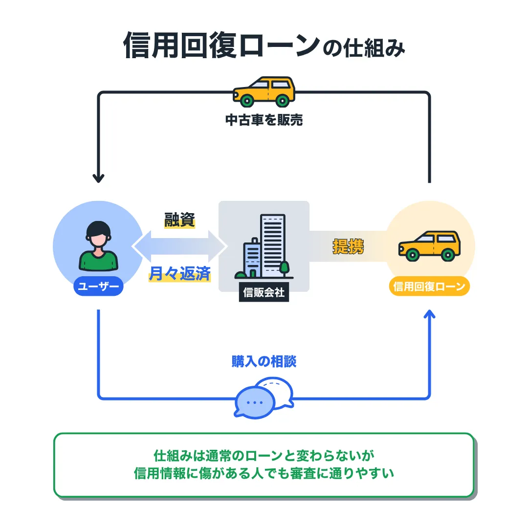 それに対して、クルマテラスはれっきとしたローンサービスであり、信用情報に返済記録が残る。返済を通して信用を少しずつ回復できるため、ローンを完済する頃には住宅ローンや教育ローンなど、他のローンサービスの審査に通りやすい状態を作れる。
