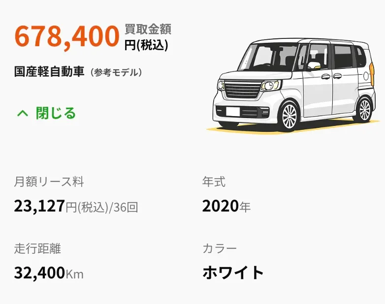 では、ホンダ N-BOXを129万円でクルマネーに売却し、買取金額の20%が上乗せされたと仮定してリース料金を比較してみよう。