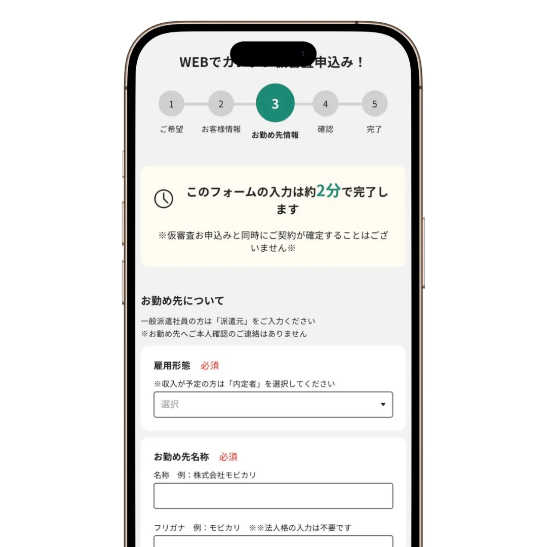 それではモビカリの仮審査に申し込む流れを解説していきます。