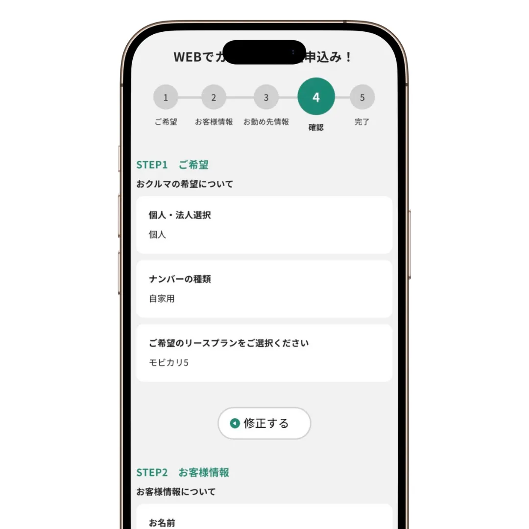 モビカリアドバイザーに車種やリースプランについて相談し、契約内容が固まったらリース会社の本審査に申し込みます。本審査申し込みはモビカリが代行してくれるので、ユーザーで対応する必要はありません。