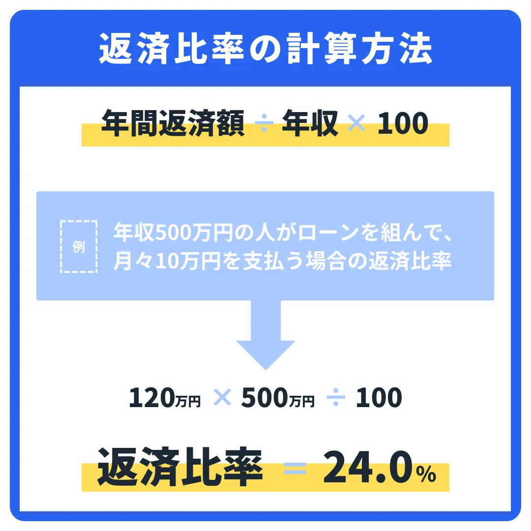 ローンの返済比率とは、年収に占める返済の割合のことだ。具体的には以下のように計算する。
