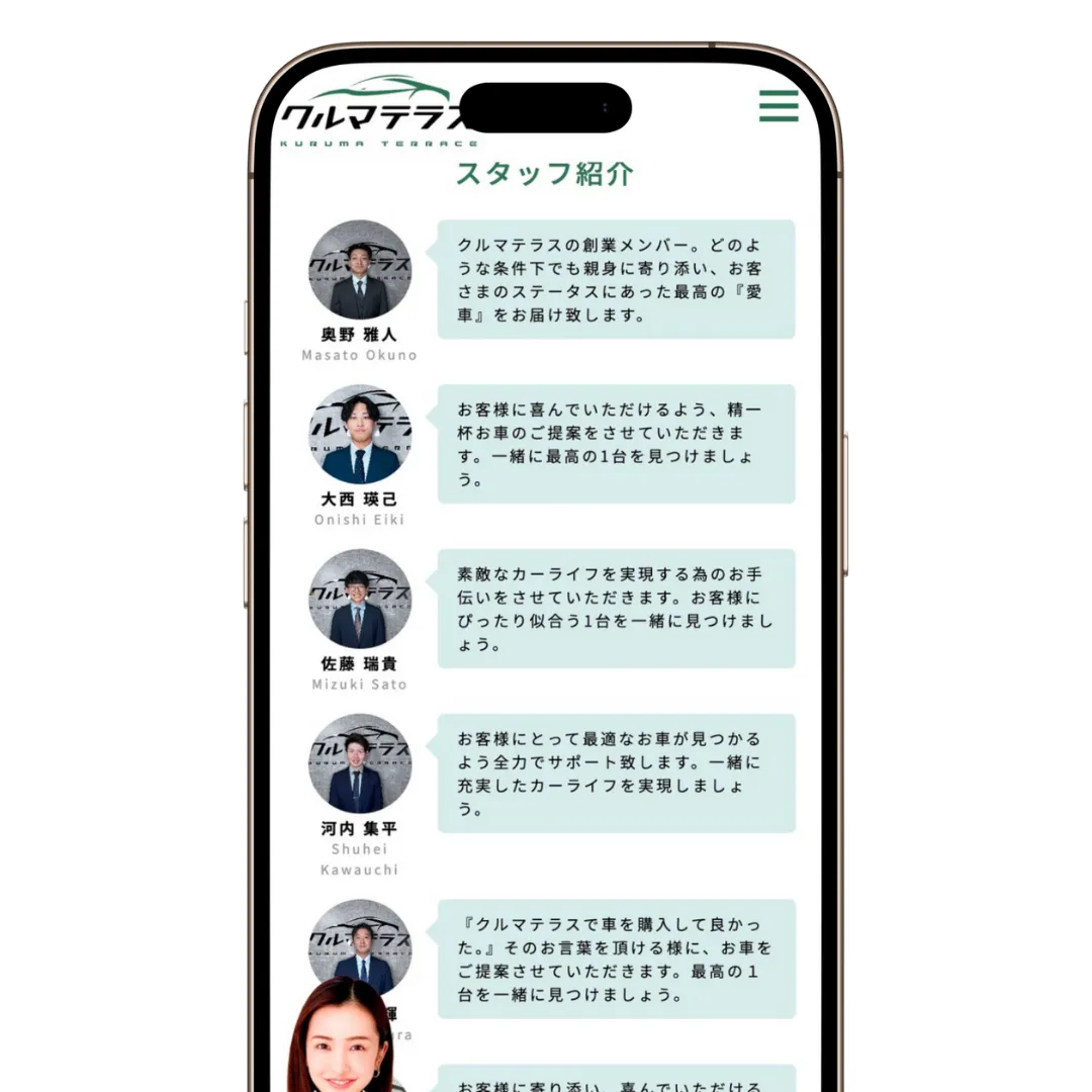 また、クルマテラスの公式サイトでは在籍しているスタッフ(販売担当者)の顔も見える。
