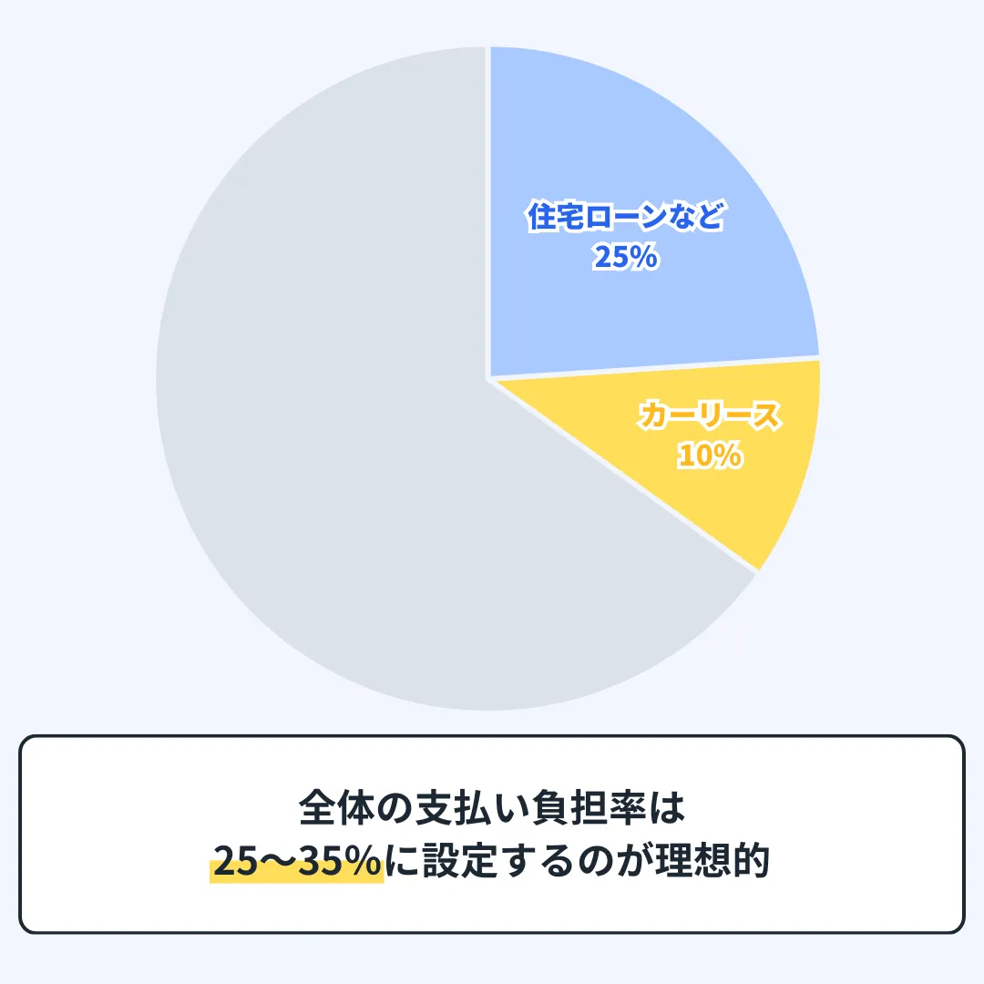 一般的な支払い負担率の目安は、カーリースやその他のローン返済額などを含めて25〜35%だ。