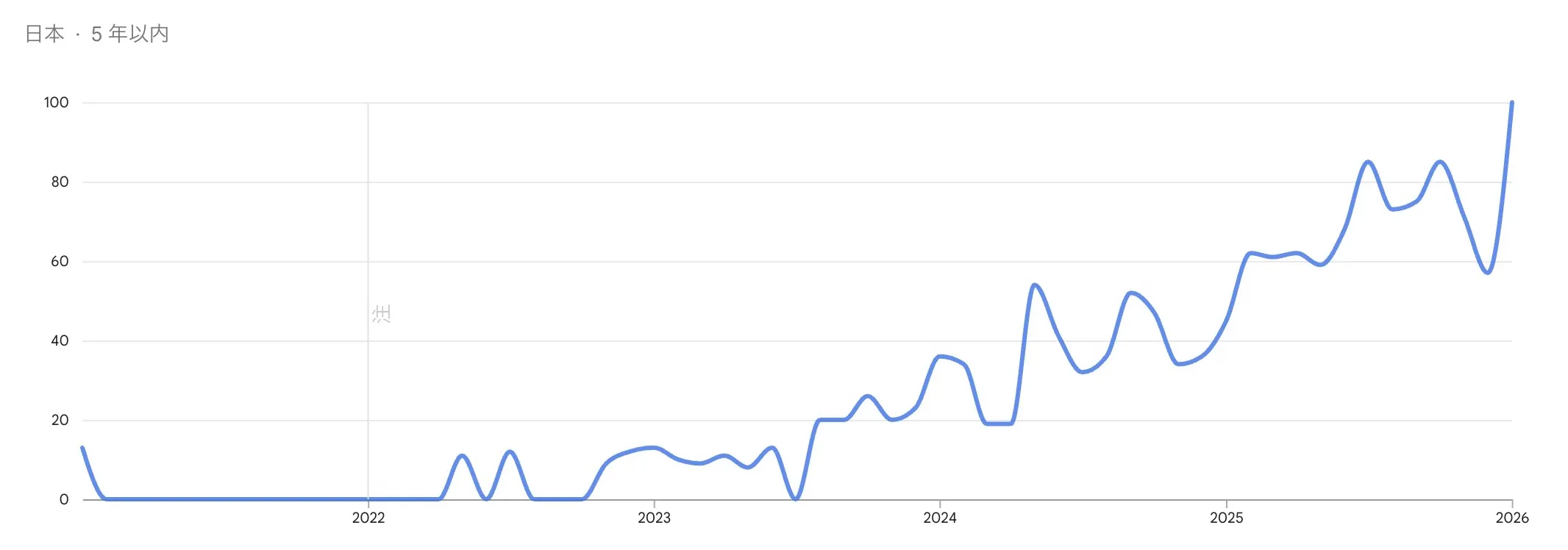 ※ 日本における過去5年間の検索動向の推移をGoogleトレンドで調査