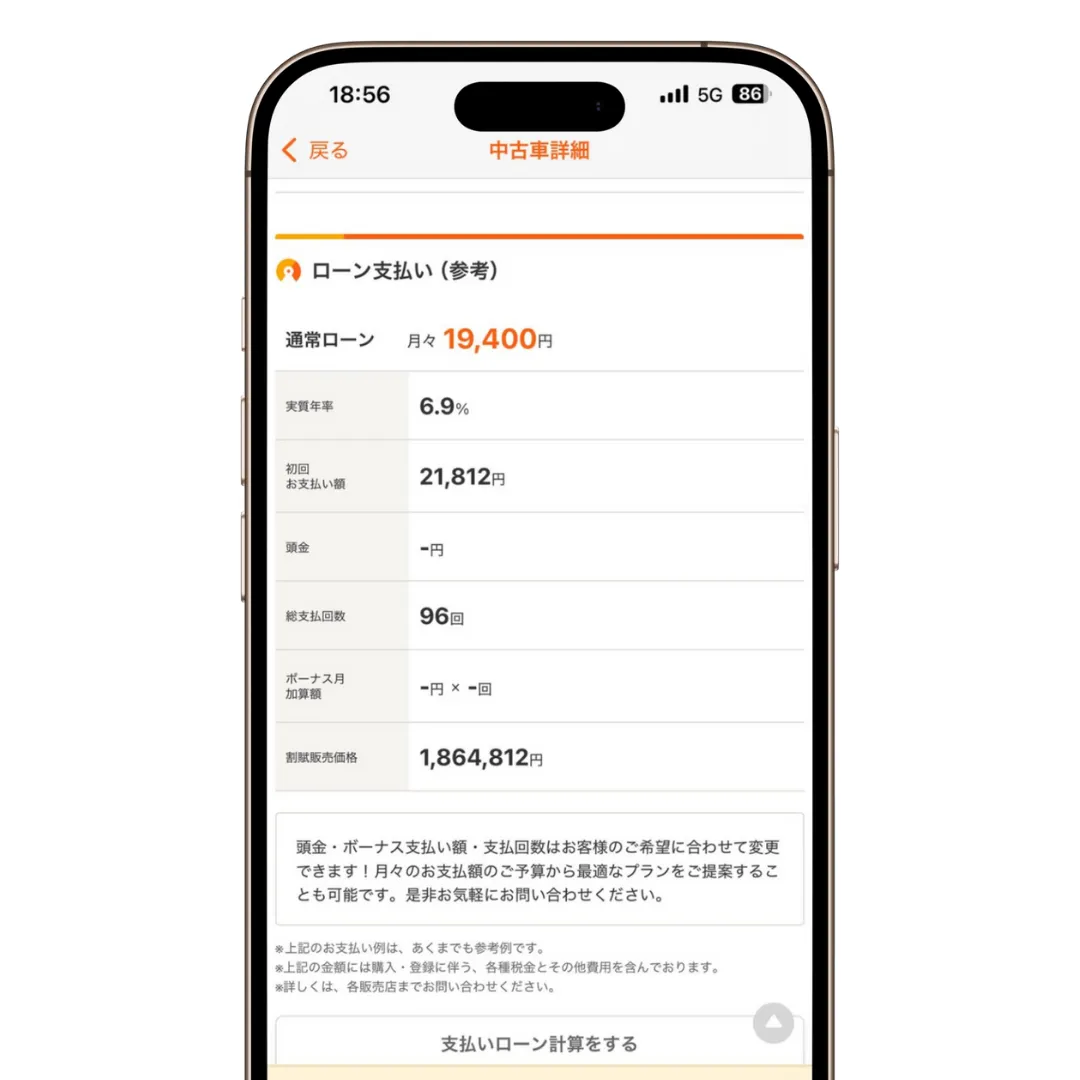 ウィーカーズはローン金利を公式サイトで公表していない。また、中古車情報ページでは現在、ローン金利が確認できない仕様になっている。