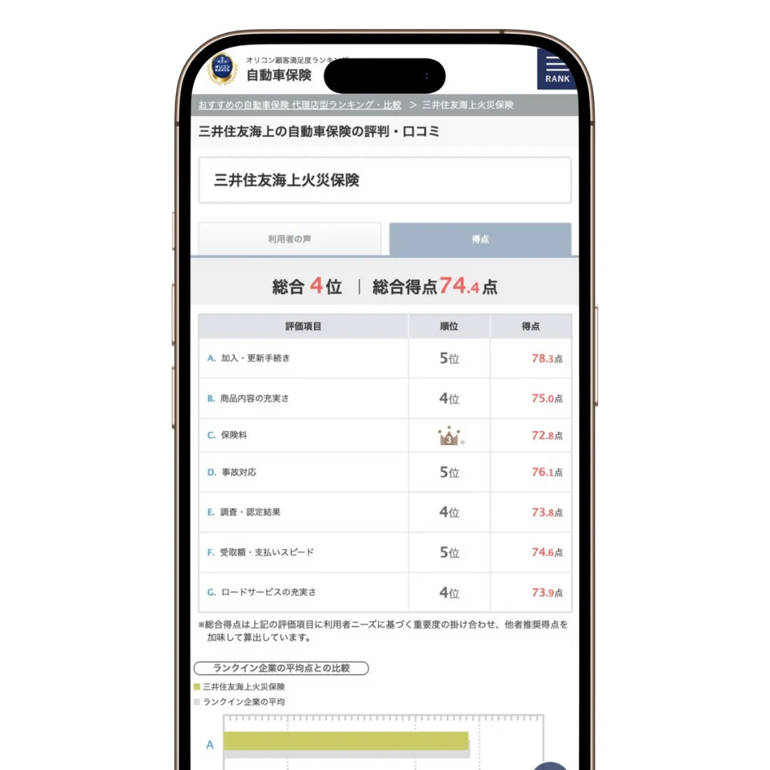 エンキロが代理店として提供している、三井住友海上の任意保険は、オリコン満足度調査で第4位を獲得している保険だ。